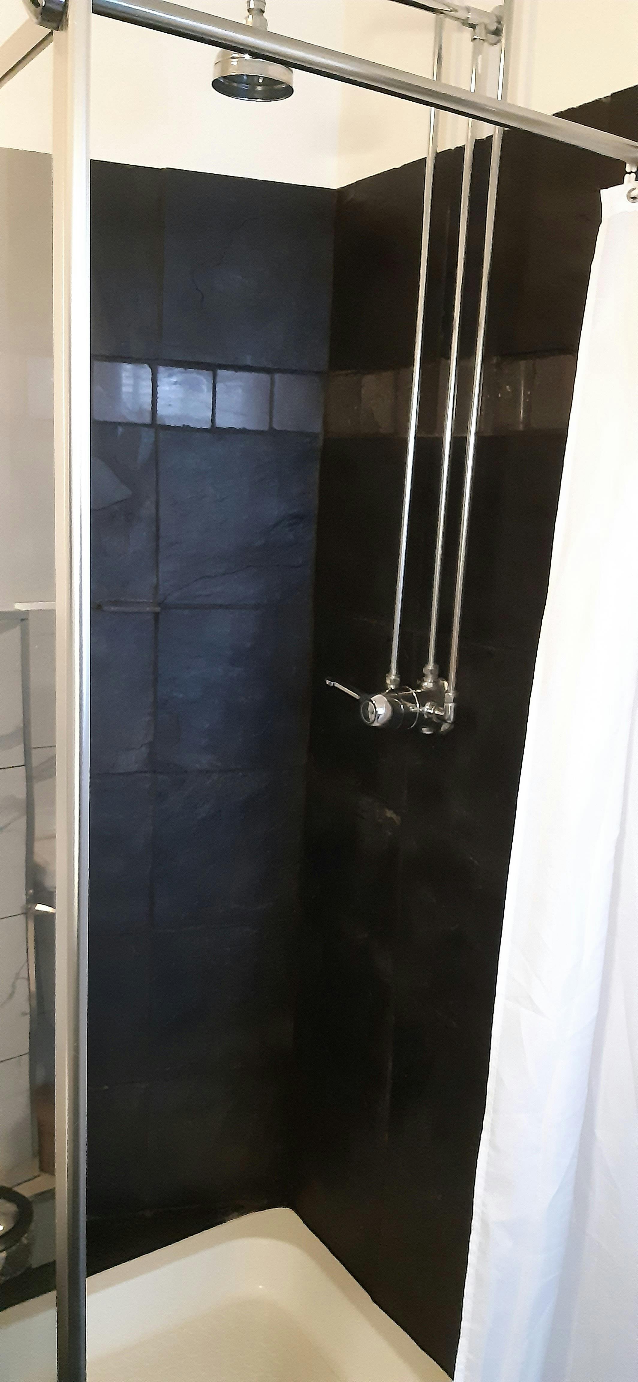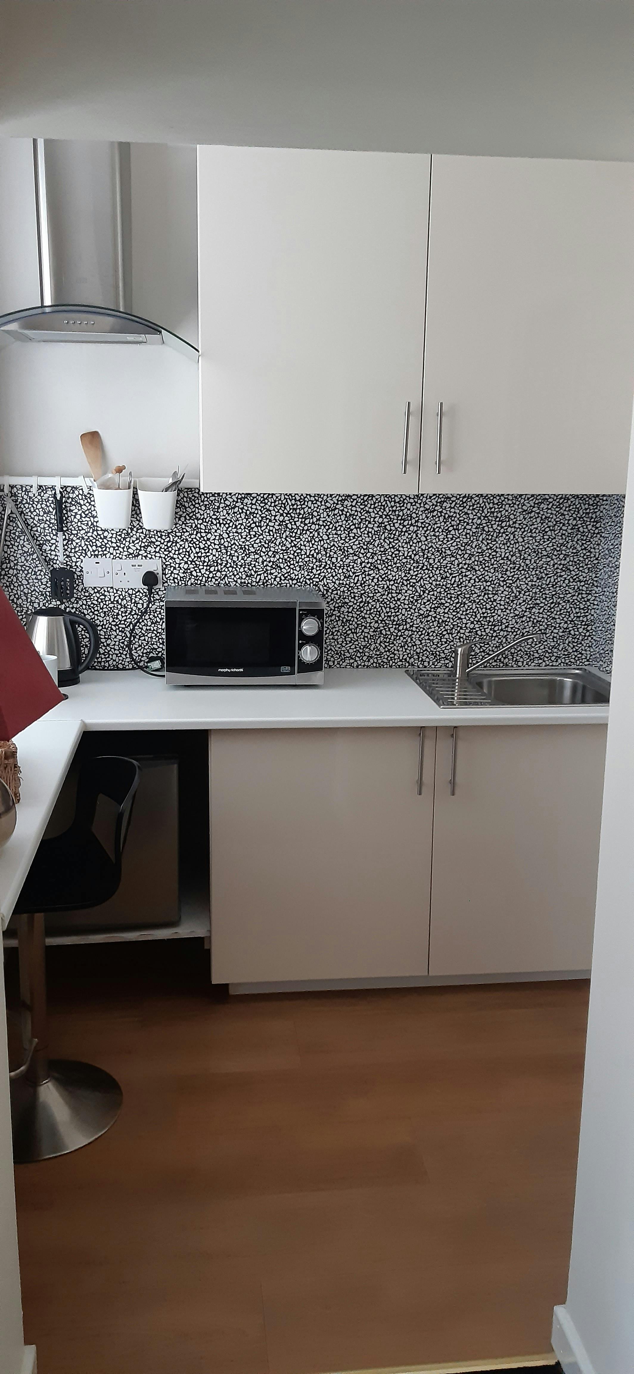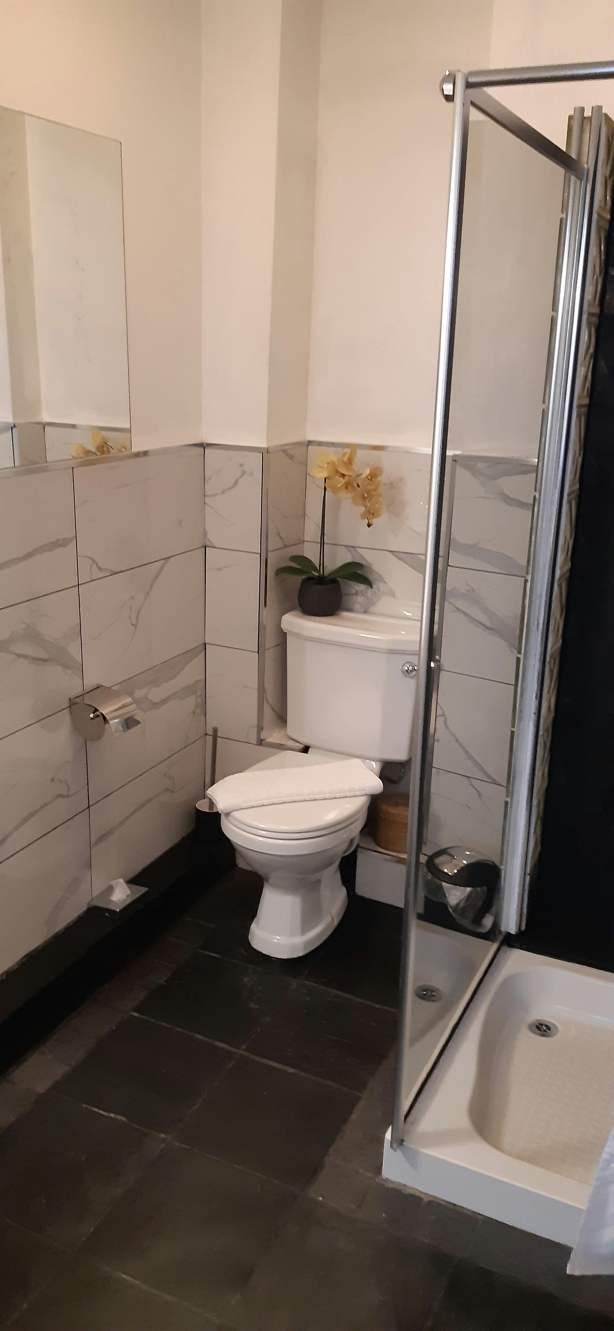 Another of our boutique double rooms and a guest favourite. A large slate tiled en-suite with underfloor heating, W/C, pedestal basin and walk in shower & complimentary cosmetics await. A modern King size bed, A writing desk and clothes storage rail, flat screen TV & superfast WIFI ensure a comfortable stay. This room also has the benefit of a modern fitted kitchen with fridge microwave and sink drainer allowing a self catering stay/room service breakfast if desired.
